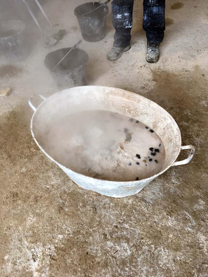 The course focused on ‘Hot mixed’ mortars which are not commonly used today, as the preparation and use of conservation mortars is largely dominated by lime putty mortars or ‘cold’ mortars based on natural hydraulic limes (NHLs). Lime based mortars have a long history of use in the UK, with evidence visible throughout the nation on traditional buildings and structures. ‘Hot mixed’ Mortars are perceived to be the most authentic way to prepare lime mortar, although much more difficult.