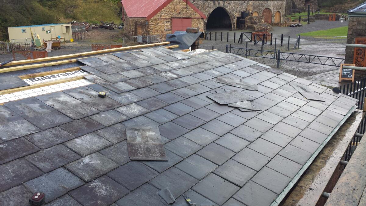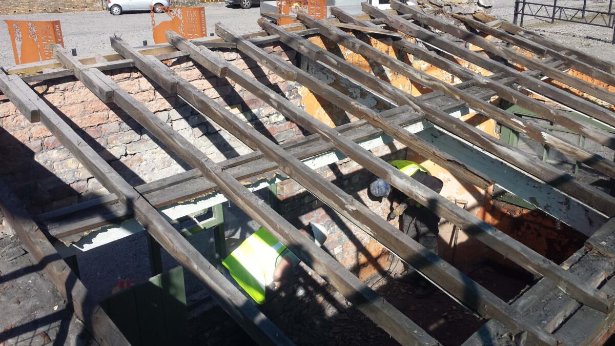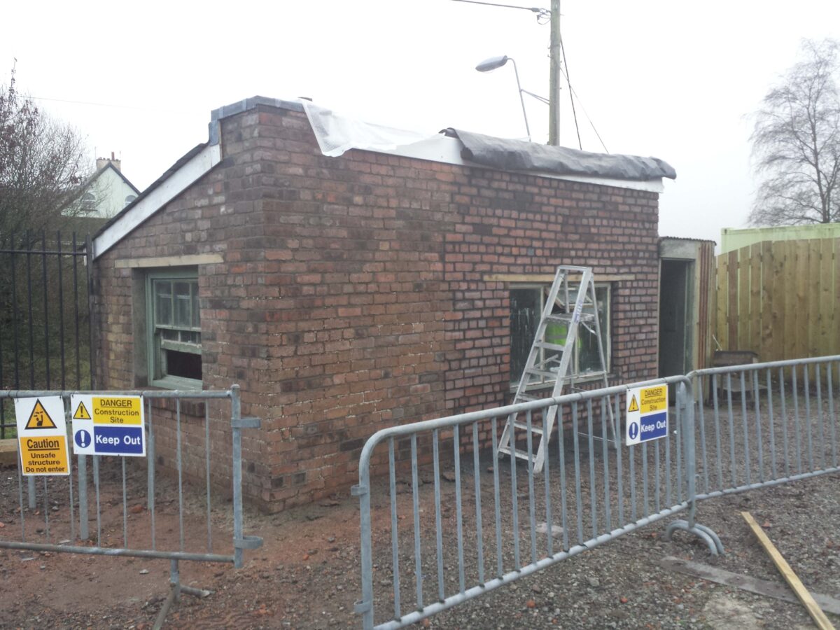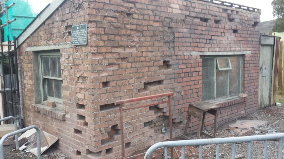 The rotten floor of the Weighbridge building was removed, and repair work commenced on the windows and doors. The roof was stripped and re-slated with the existing useable natural welsh slate where possible and new slates to match. Areas of frost damaged brick that could not be repaired were removed, replaced and repointed.