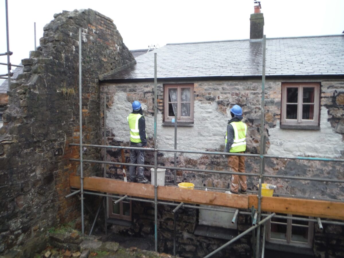In 2014, we were contracted by CADW to undertake both external and internal repairs of the Weighbridge building as well as external limewash and consolidation with limework to the Stack Square cottages and surrounding perimeter walls and buttresses.
