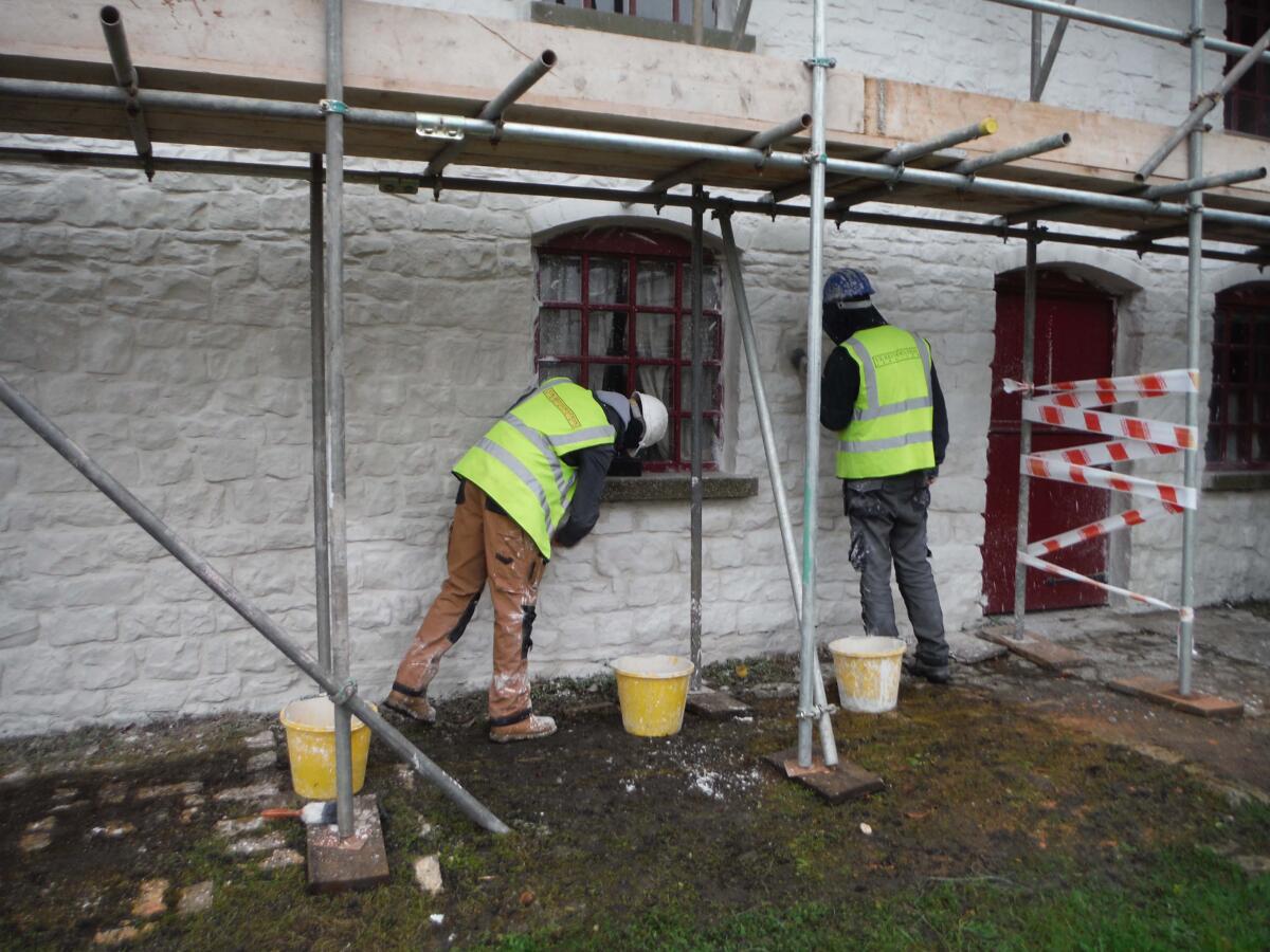 Each workshop lasted two hours and was conducted by our Director Philip Braithwaite and assisted by our team. The workshop included a tour of the restoration works and the theory behind the lime work and its uses including the mixes. Everyone then had the opportunity to apply limewash upon the cottages and were given the PPE (hard hat, high visibility vest, gloves and goggles) as a memento of the day.