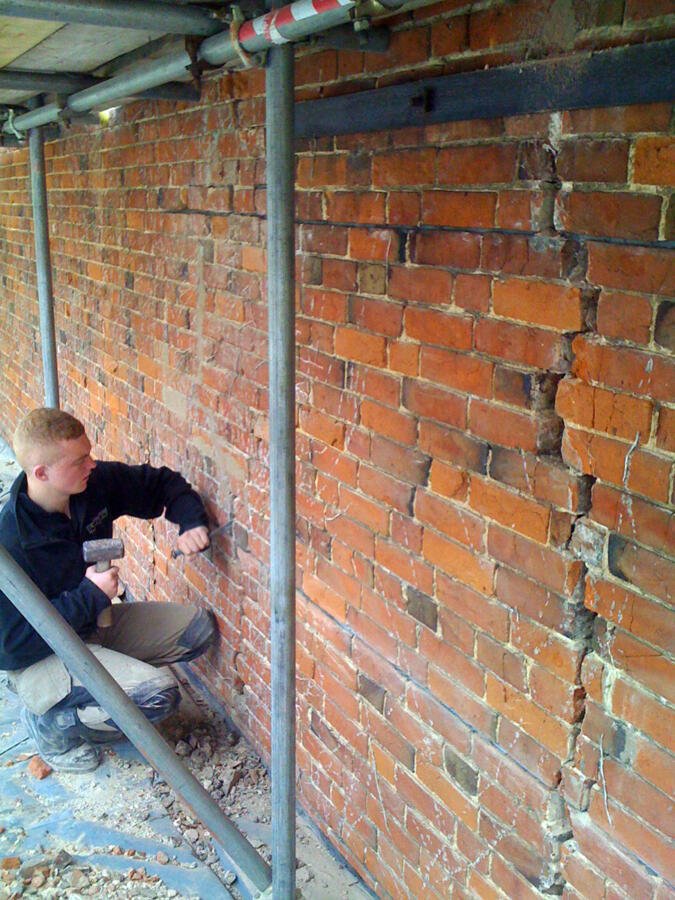 This project involved brick stitching movement cracks using traditional Lime Mortar. The house also had over 80 joist ties installed.