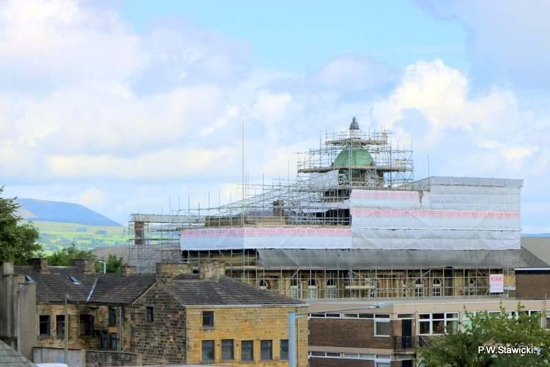 The UK Restoration Team has been conducting extensive restoration work throughout Burnley Town Hall since January 2019. Phase 1 Roofing work was completed at the End of April, which involved a complete re-roofing of the North West Elevations, along with repairs to stone work, guttering and lead details.