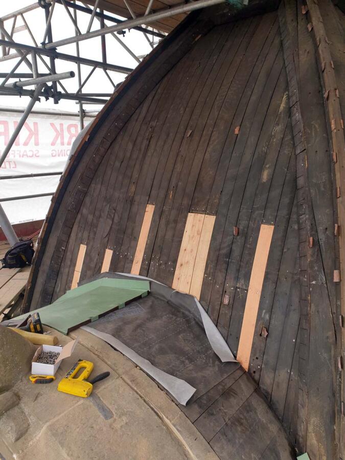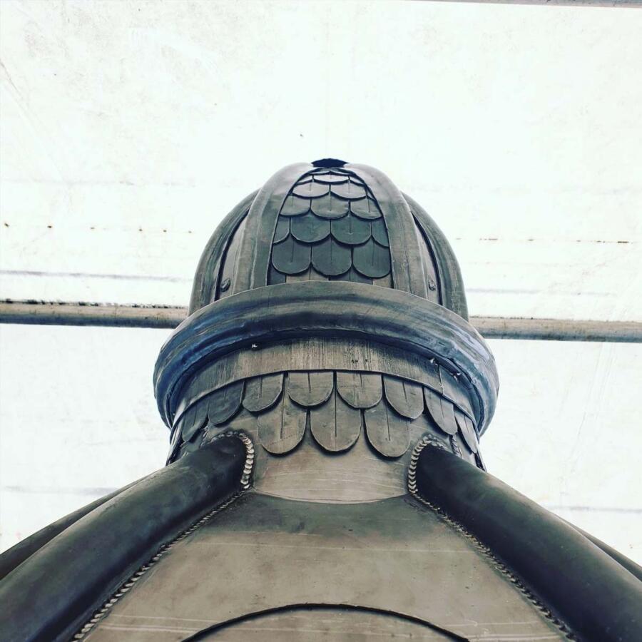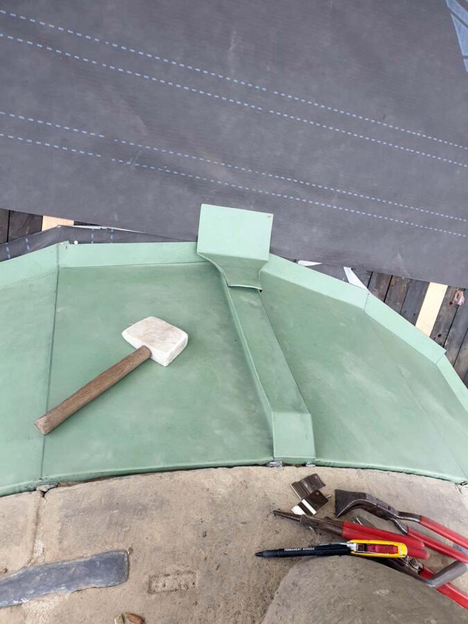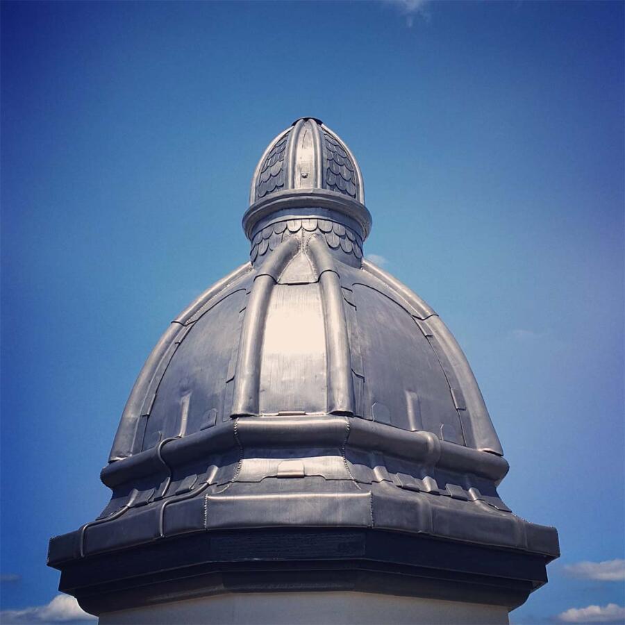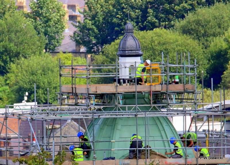 Once the lantern had been fabricated , it was returned to the Town Hall and hoisted into place on top of the newly clad copper dome. The oak timber was prepped and painted using linseed oil based products. These protect the timber from the elements but still allow it to breath, increasing the longevity further. The 2 small domes located at the top of the lantern have been clad in ornate lead details for aesthetics, but also to provide weather proofing and stop any water ingress to the internal structure of the lantern.