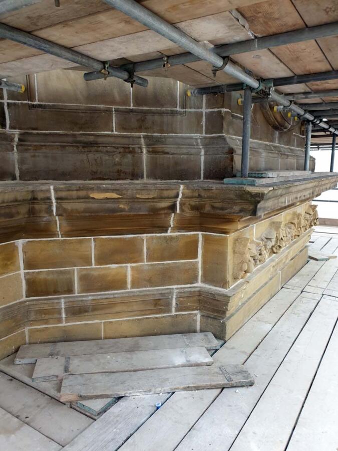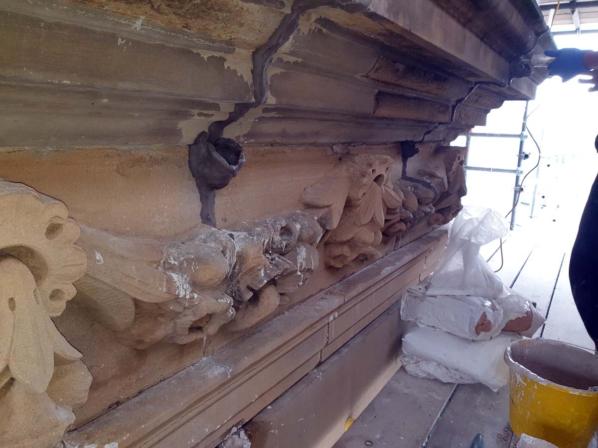 Phase 2 of the Roofing repairs is on going, which will see the front elevation of the building completely re-slated with new Welsh Blue Slates. Structural repairs are also being made to the roof, as well as stone repairs and reconstruction of the stone balustrades.