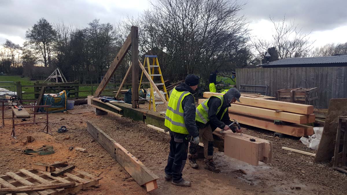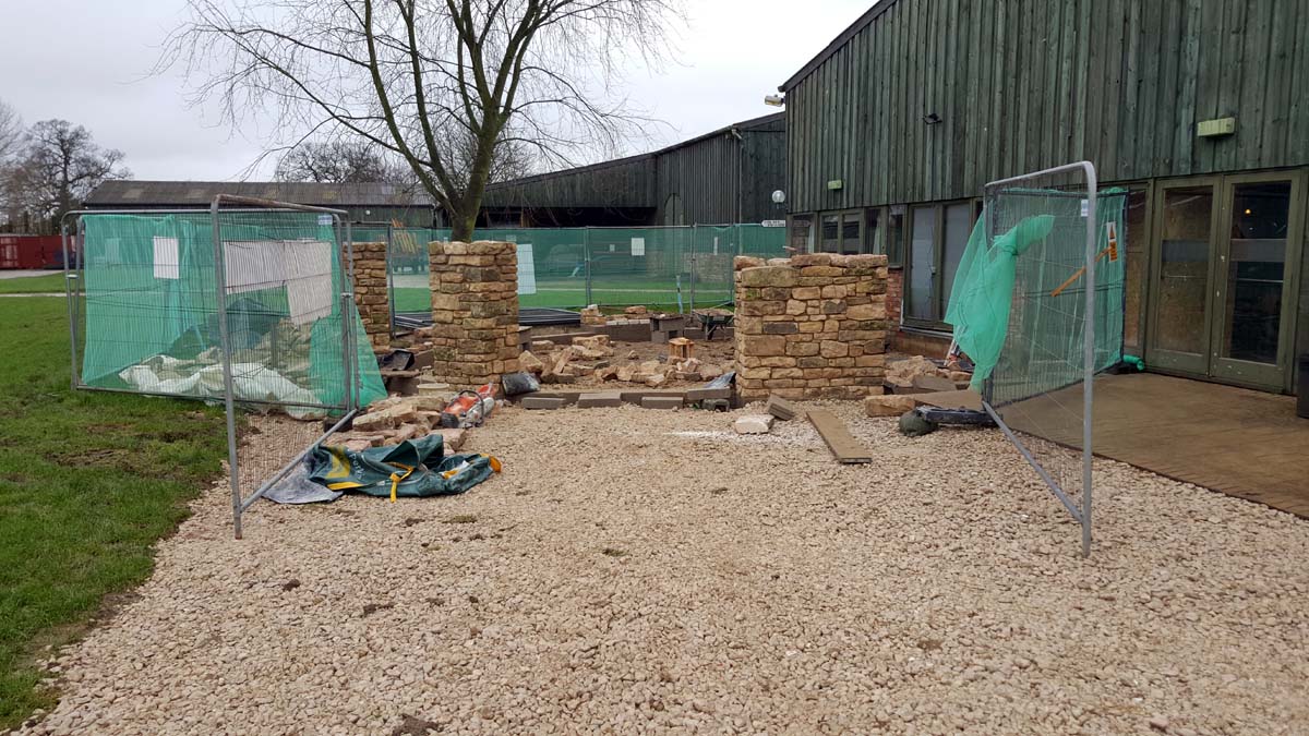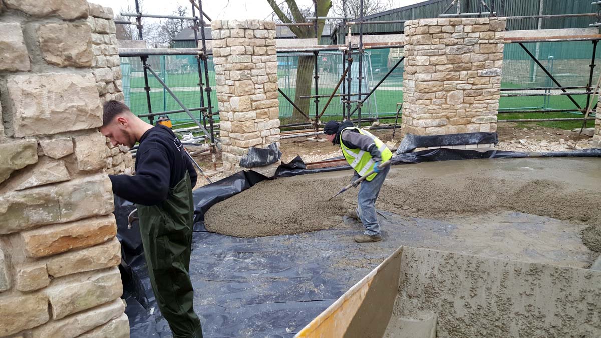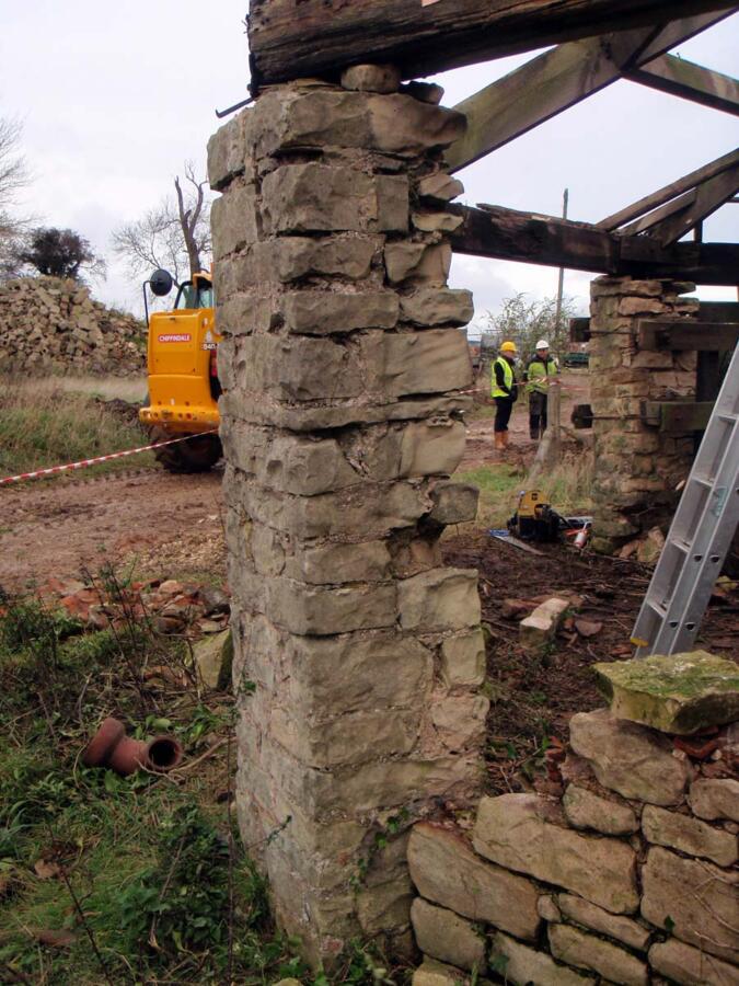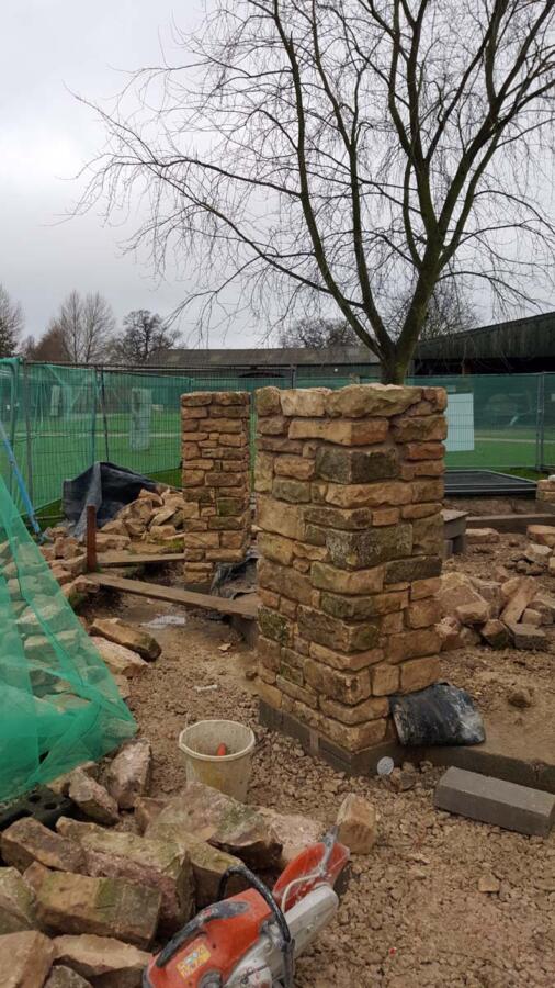Once the foundations had been prepared our team constructed the masonry using salvaged limestone blocks.