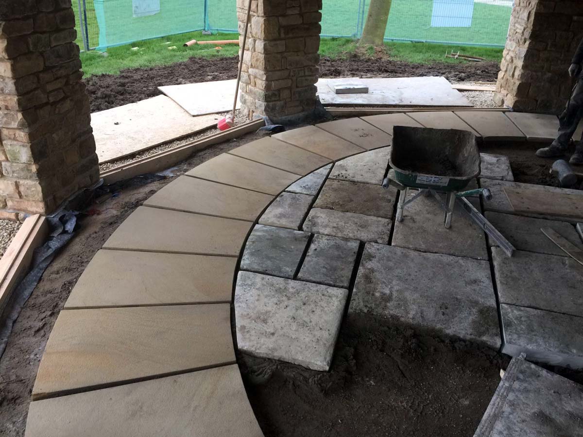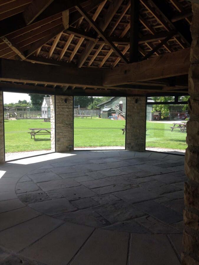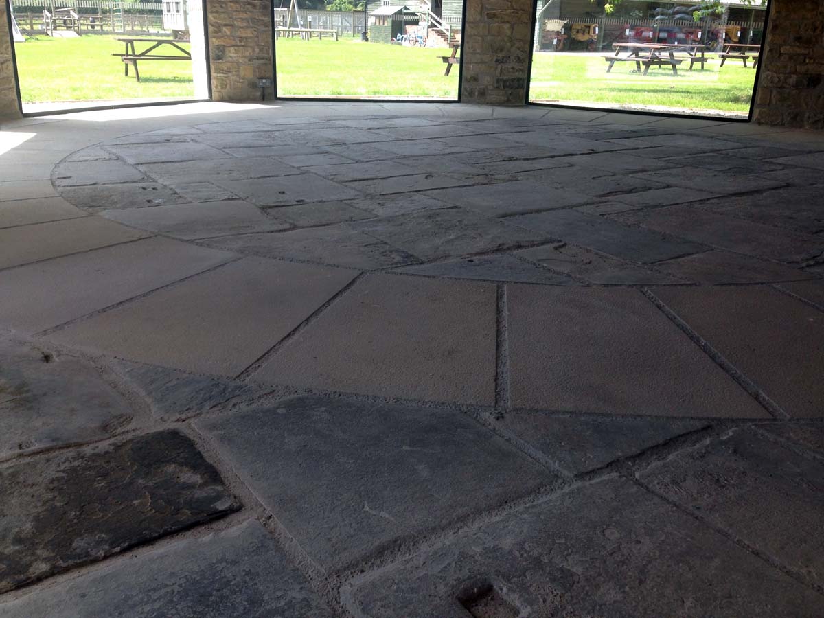 The floor was made up with stones salvaged from the original barn and matching reclaimed slates. A new stone circle was created through reclaimed slate and delivered to site.