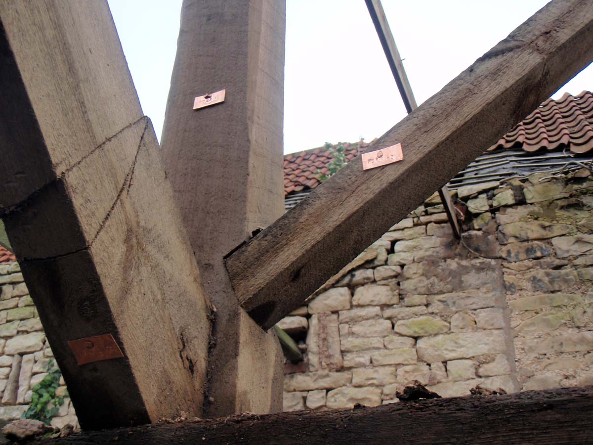 The timbers were cleaned, two coats of oil glaze were applied to externally exposed structural timbers and an application of transparent permeable coating was applied to the stone flag floor. The plaster walls were painted.