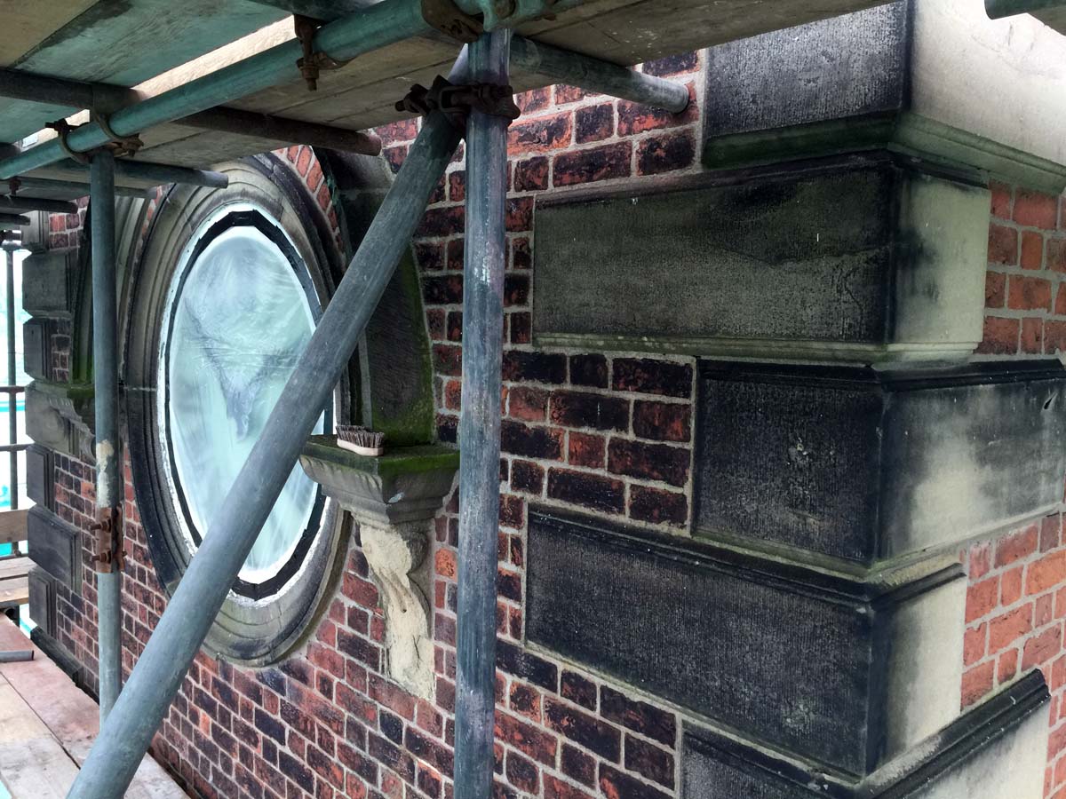 The DOFF Cleaning system was used for this project. The DOFF cleaning system is ideal for cleaning delicate stonework and masonry. It uses superheated steam to remove stubborn materials and debris.