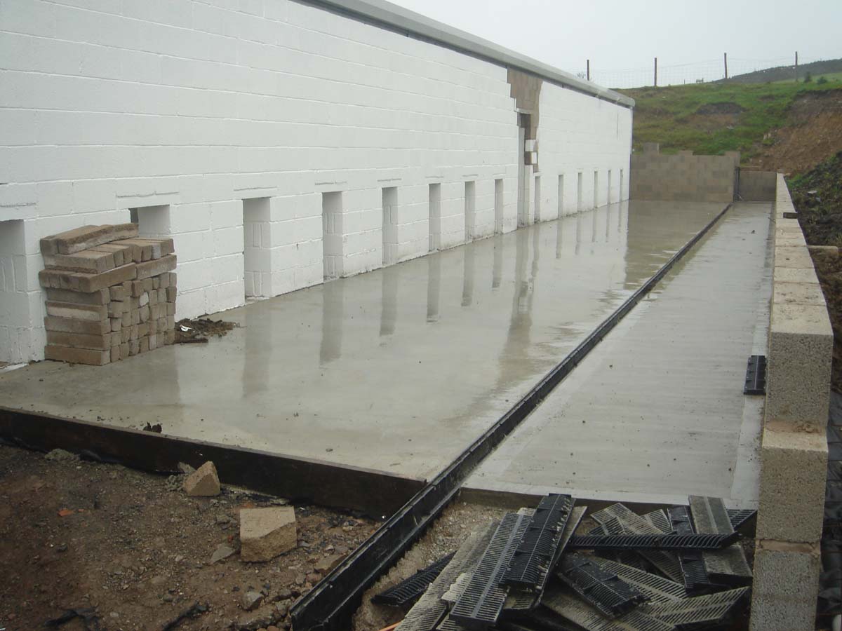 We used a local volumetric concrete supplier for the concrete floors. The floors were concreted in 3 sections between the drainage channels.