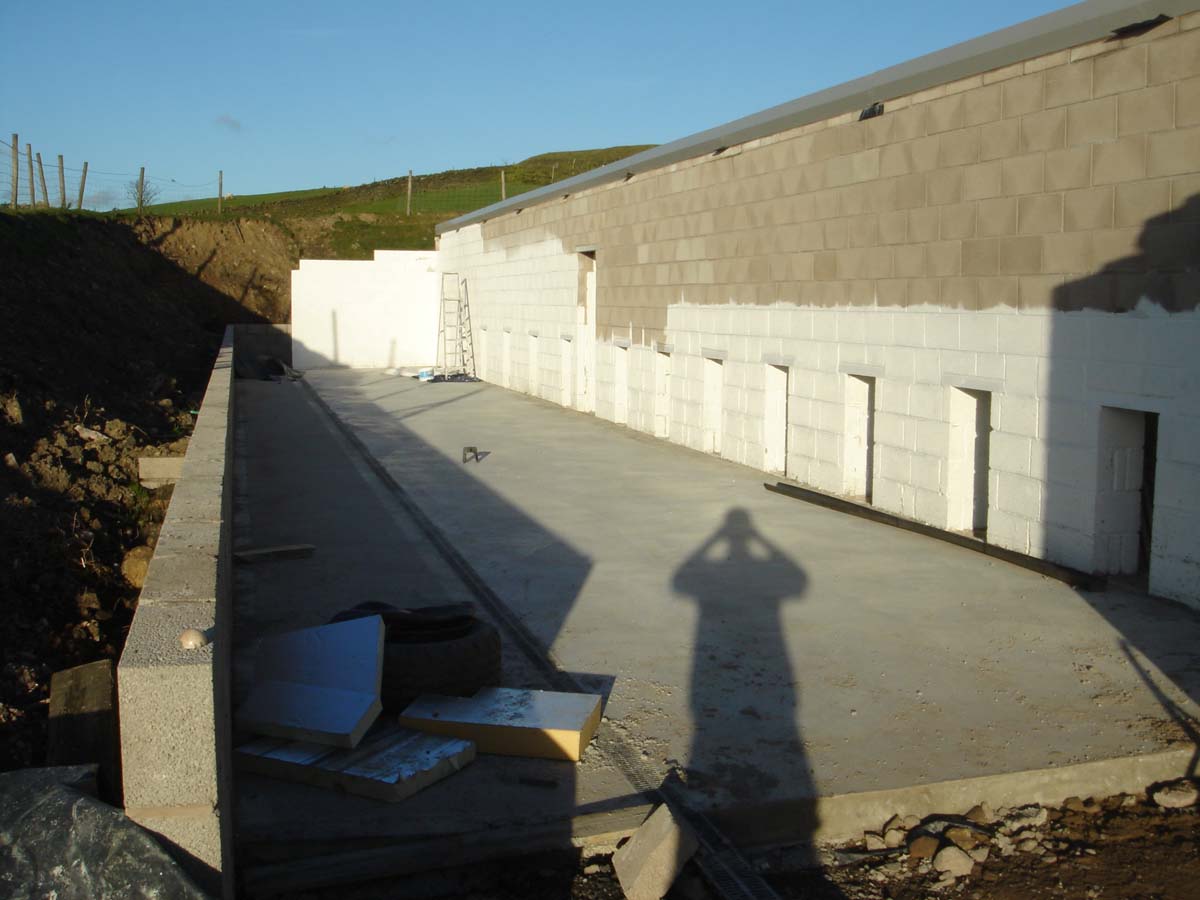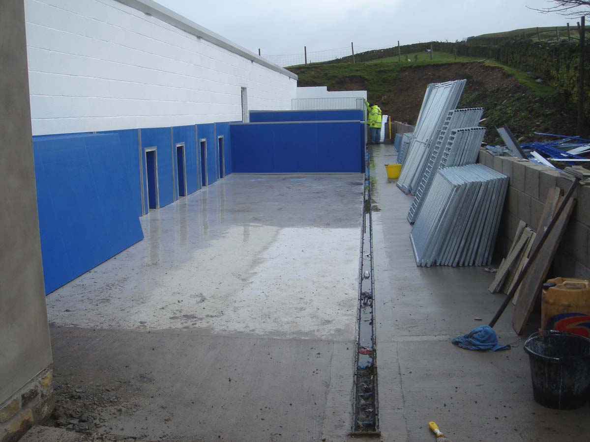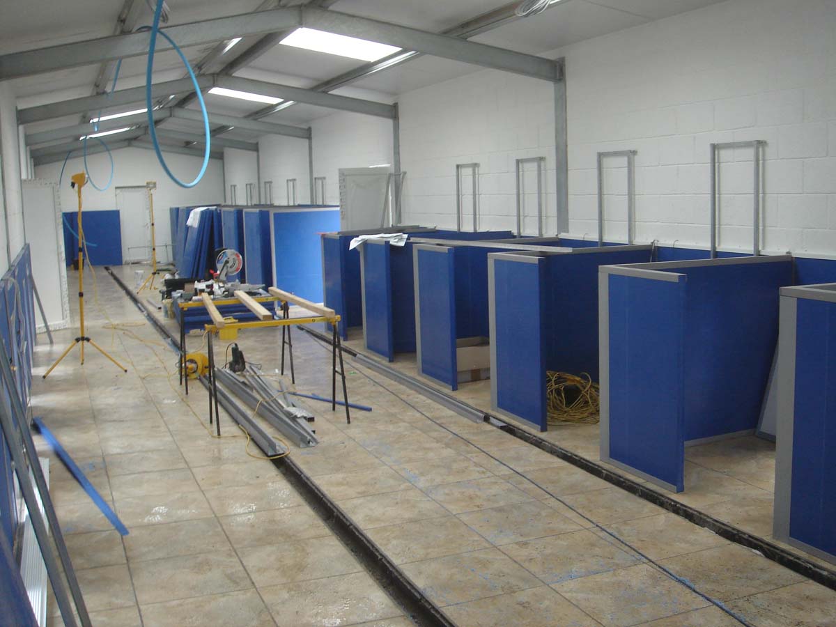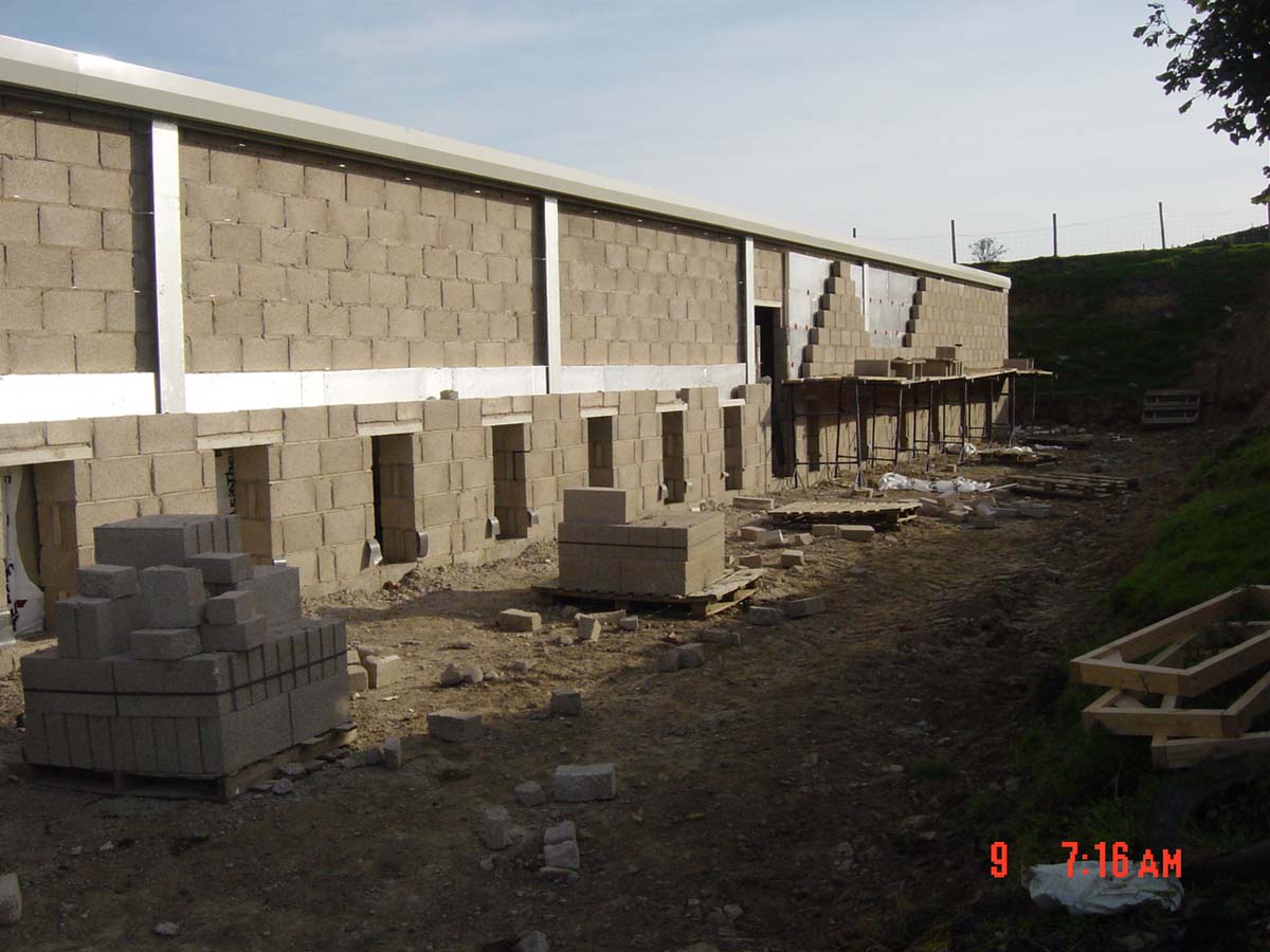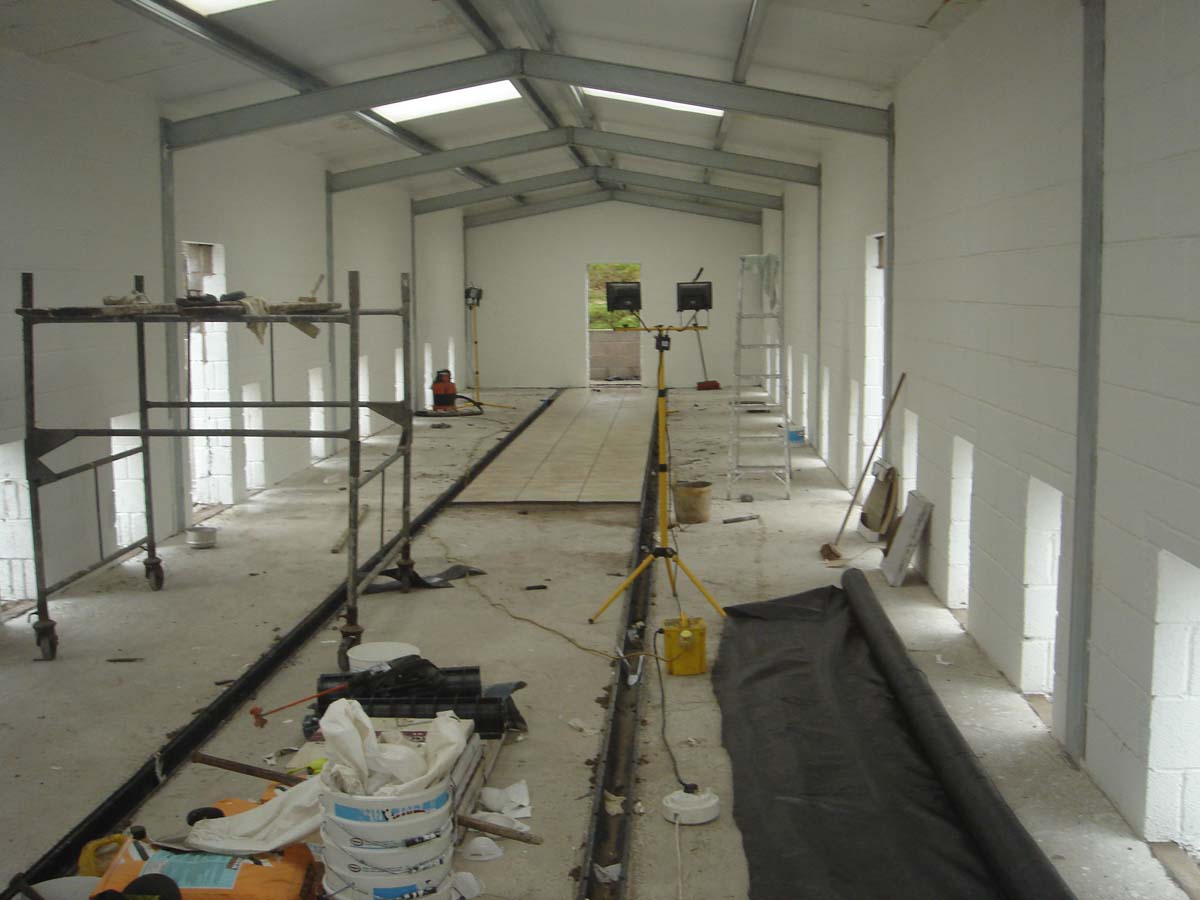 On this project we had to erect a new steel frame building, construct new insulated block work walls, install a a concrete flooring with underfloor heating, install waste treatment tank & build new offices.