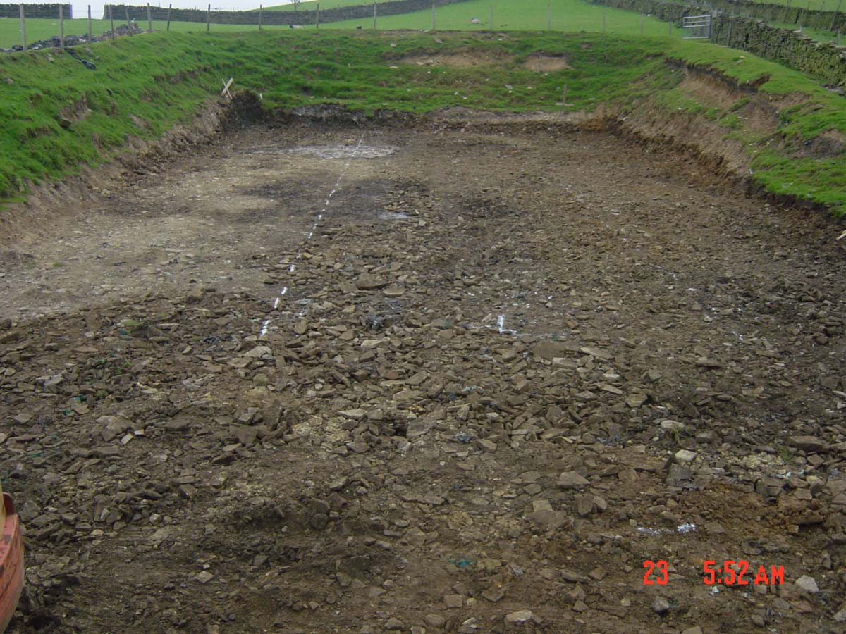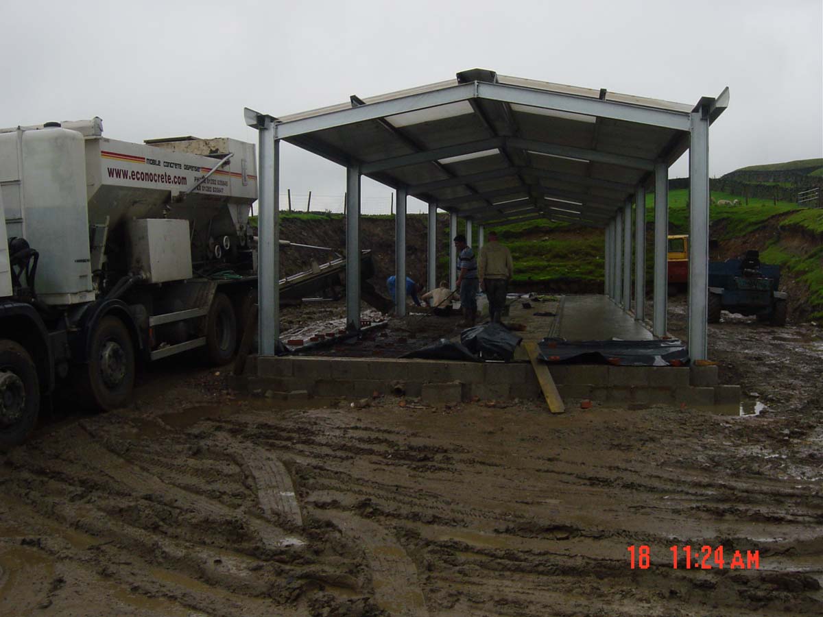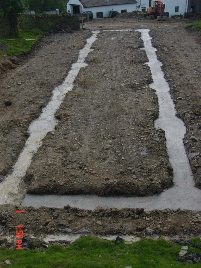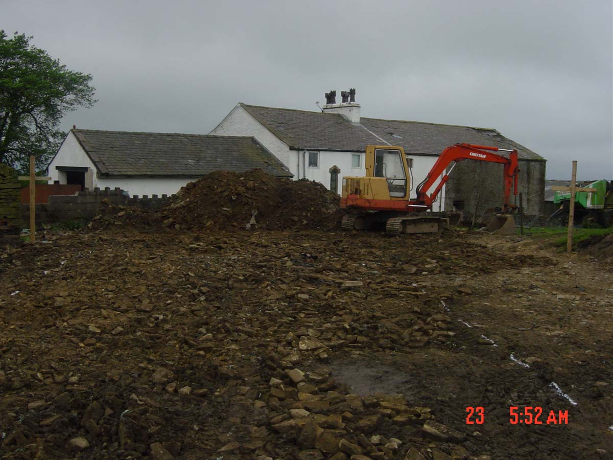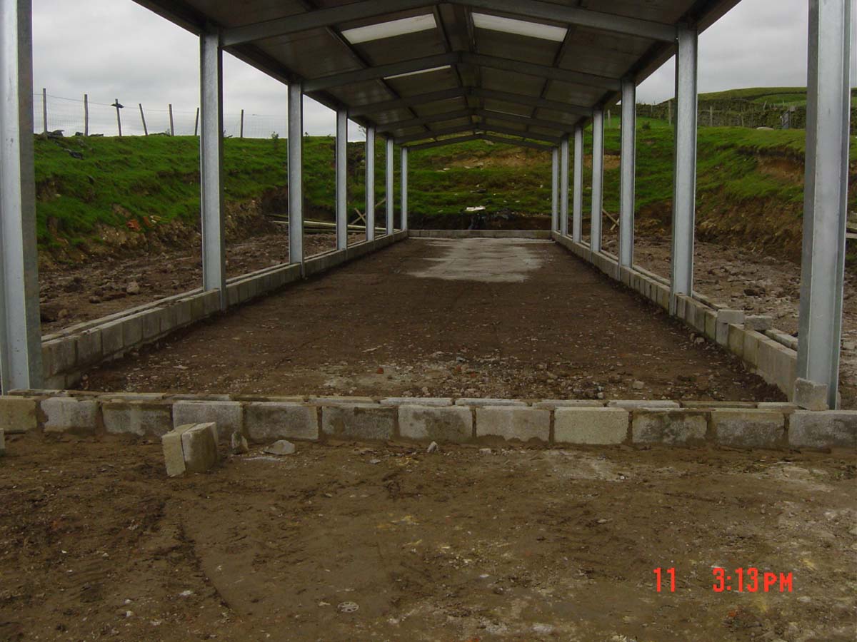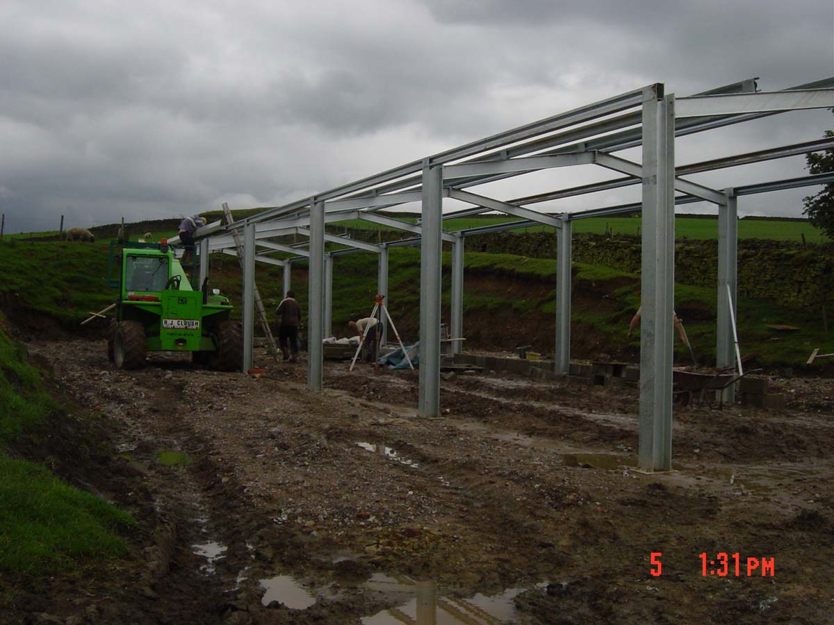 Once the site area had been cleared of the old debris for the farm, the location of the steel frame building was marked out onto the floor. We had no problems with ground conditions as the site was already 3 meters below ground level. Also there is a quarry on the farm located around 1/4 of a mile away.