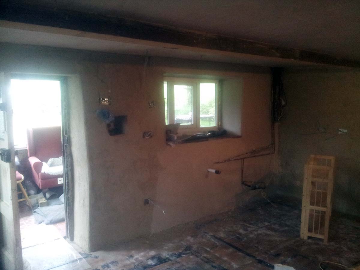 On this project we had to lime plaster the kitchen area of this period cottage in Bolton Lancashire. We removed the existing gypsum based plaster of the solid walls, this gypsum plaster was not allowing the solid stone wall to breathe so a build up of moisture was present.