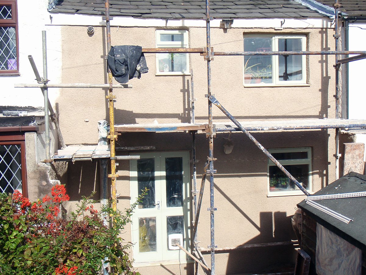 This small stone build cottage in Bolton Lancashire had a cement based render applied to the rear wall. A previous Builders in Bolton had tried to apply a Lime Render, this lime render had failed due to the incorrect batching of lime & using the wrong lime.