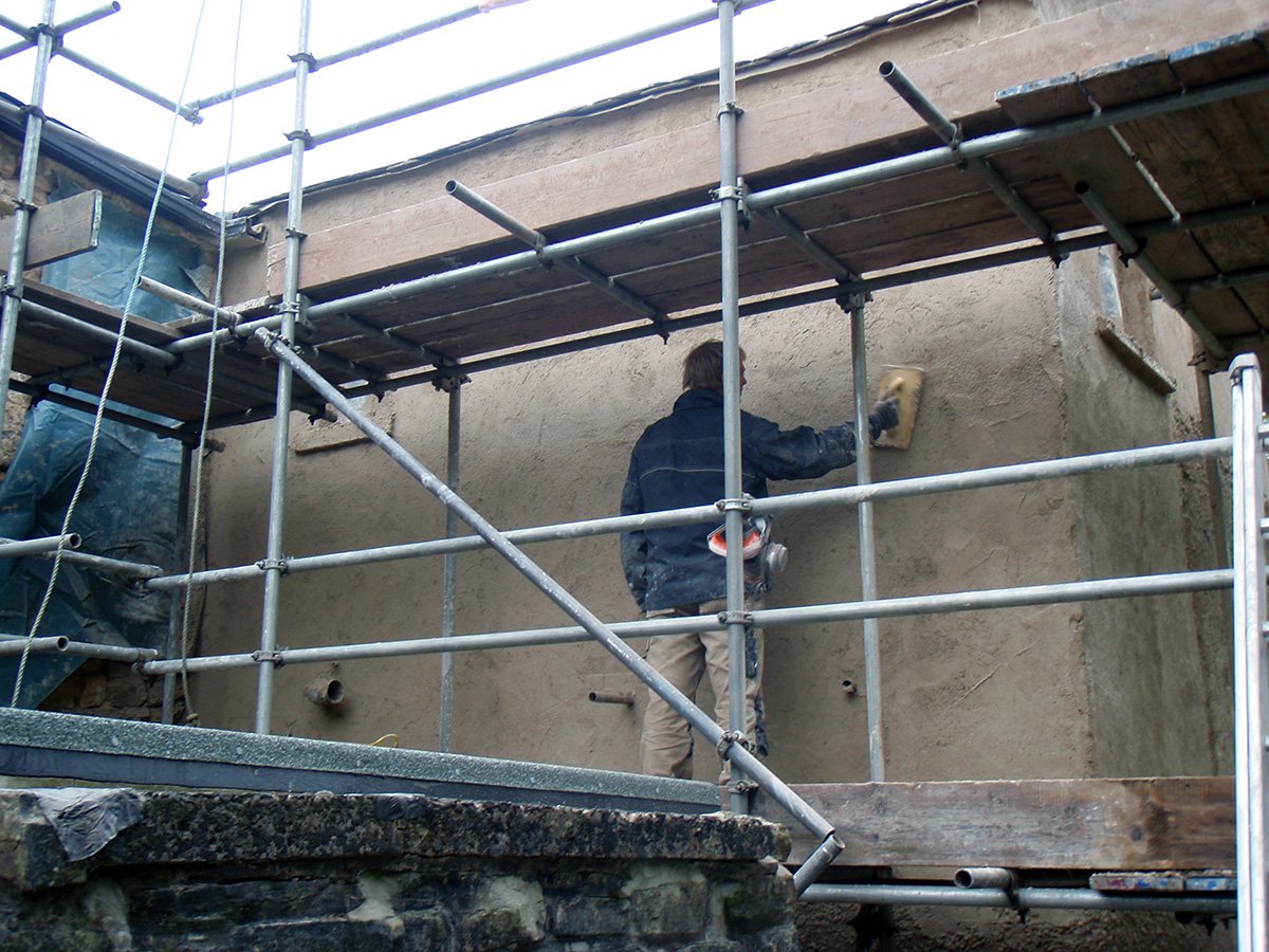 Our Builders then packed & filled any voids in the rear elevation, using lime mortar, before applying 3 layers of lime render.
