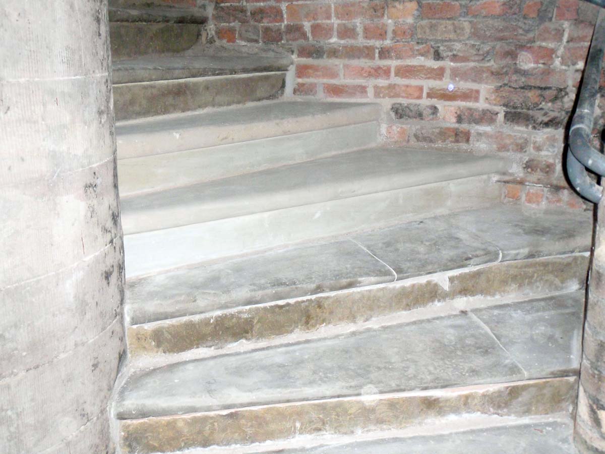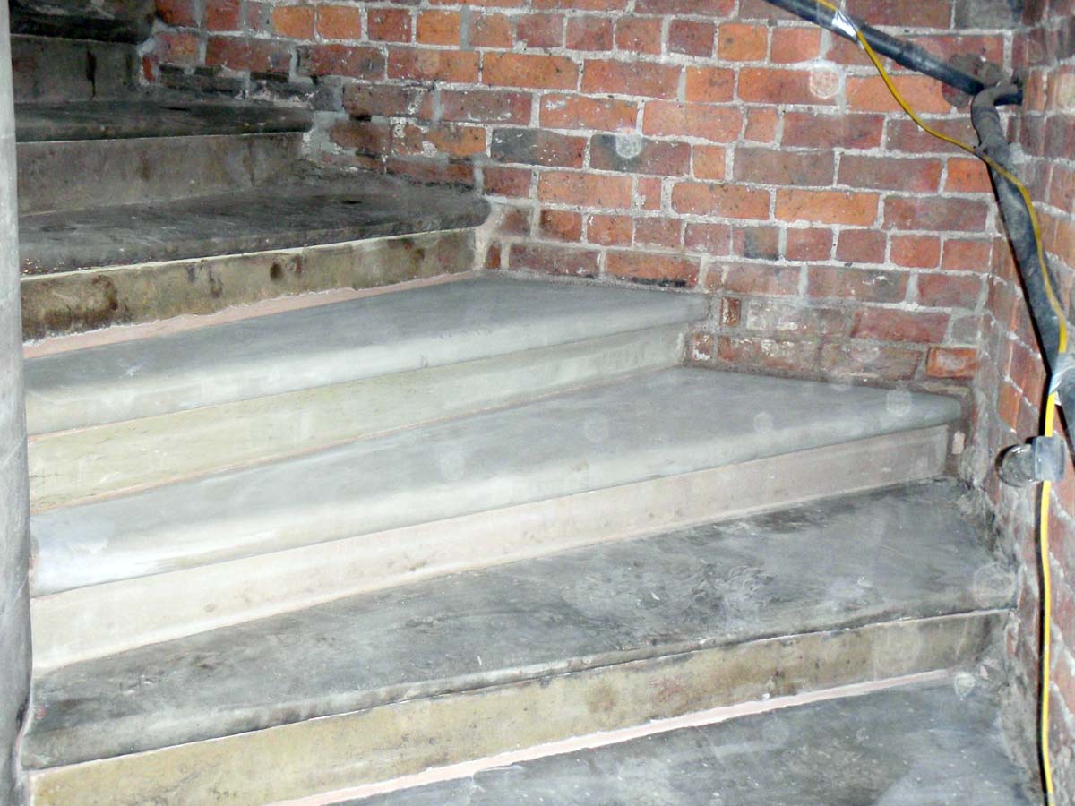 Five replacement stone treads and risers were required. These were sourced from a local quarry to carefully match the stone and sizing of the originals.